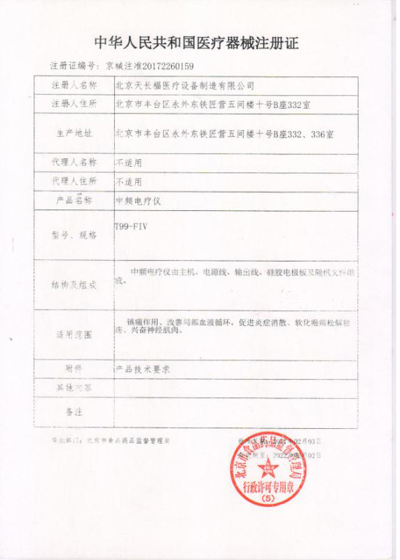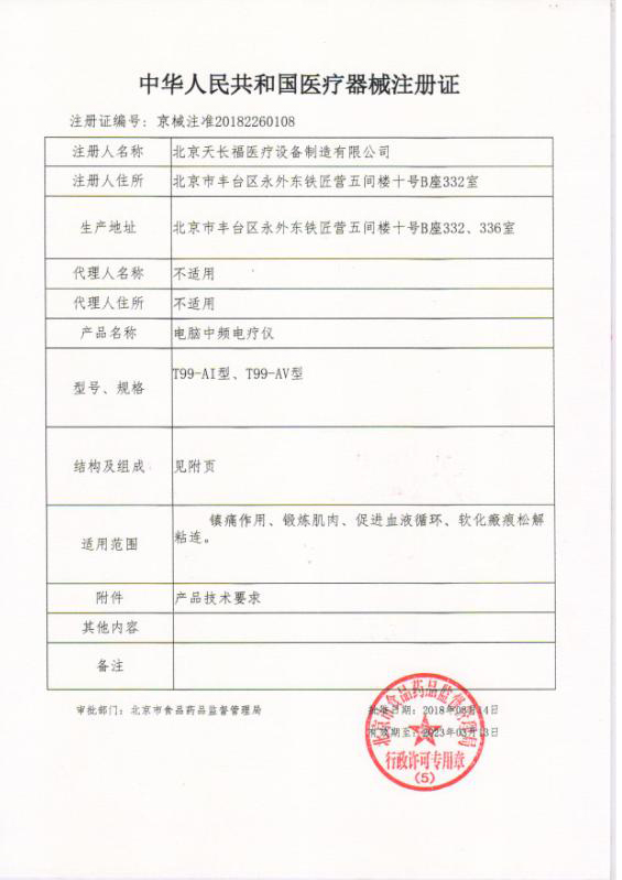 - T99-FIV醫(yī)療器械注冊(cè)證